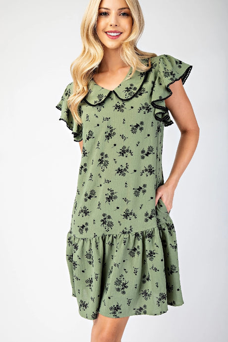$ 32.00Unit price /UnavailableVintage Floral Print Dress Flutter Sleeves Peter Pan Collar - Sage