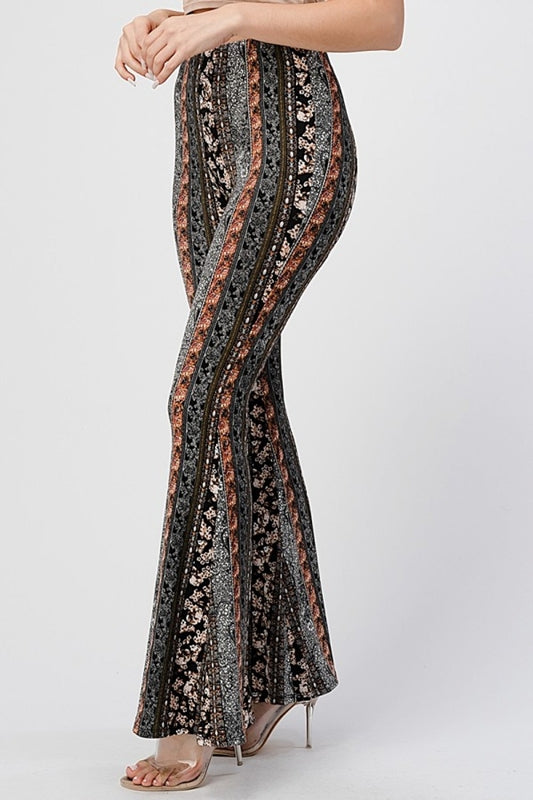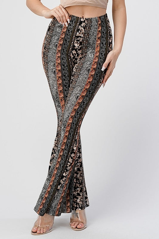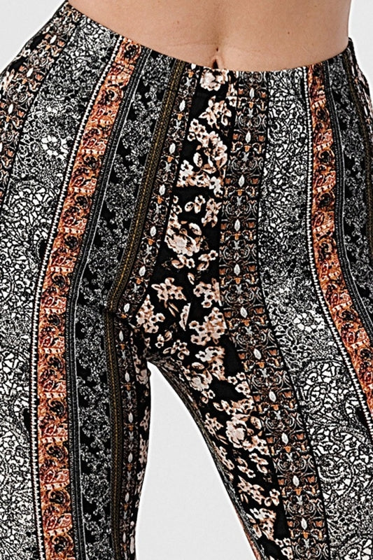 Boho Cosmos Geo print soft skinny flared legging bell bottom pants. Elastic waistband. Everybody loves a comfy pair of skinny pants, so cute, goes with almost anything. Brushed fabric.