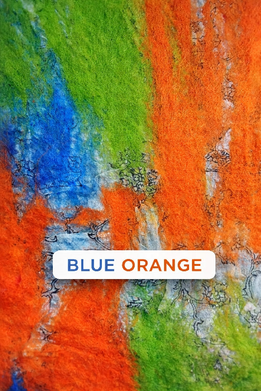 Merino Wool Silk Felt Upcycle Art Sari Scarf - Multiple Colors - Blue Orange Multi is backordered and will ship as soon as it is back in stock.
