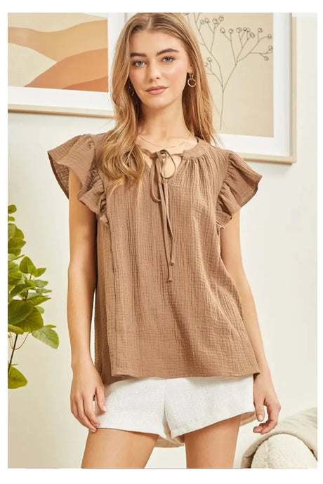 Andree by Unit Flutter Sleeve Top - Soft Mocha