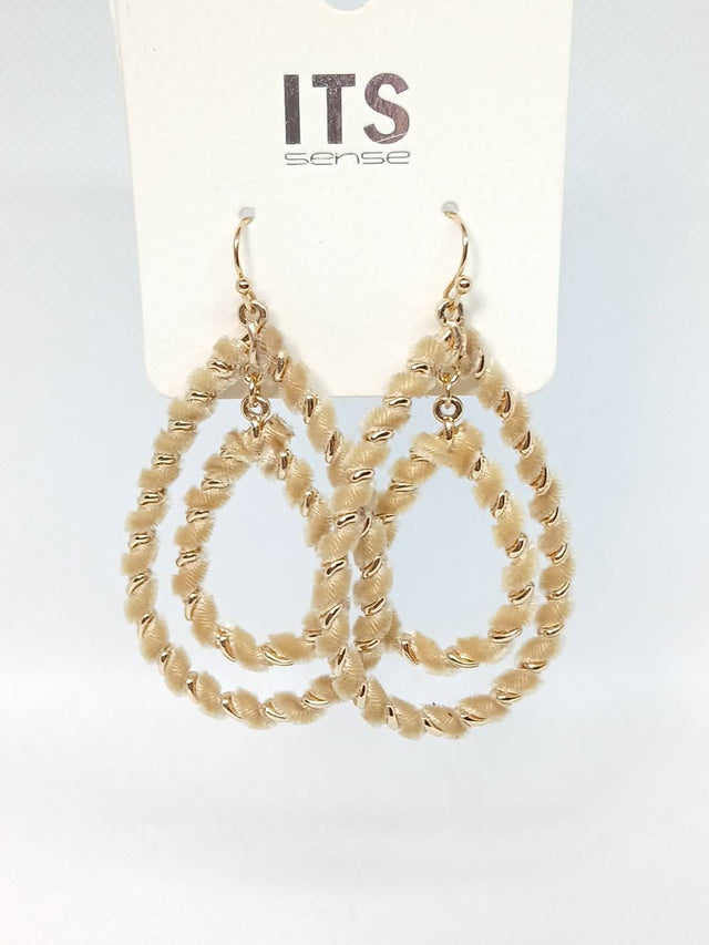 Faux Velvet Furry Teardrop Earrings - Light Brown