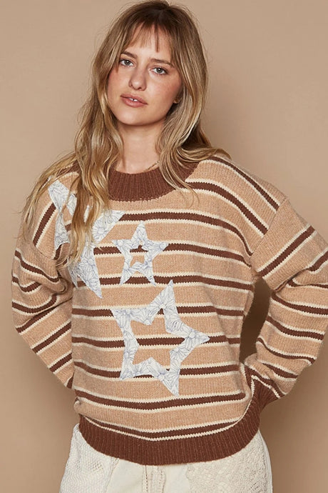 POL Star Gazer Patch Stripe Sweater - Brown Stripe